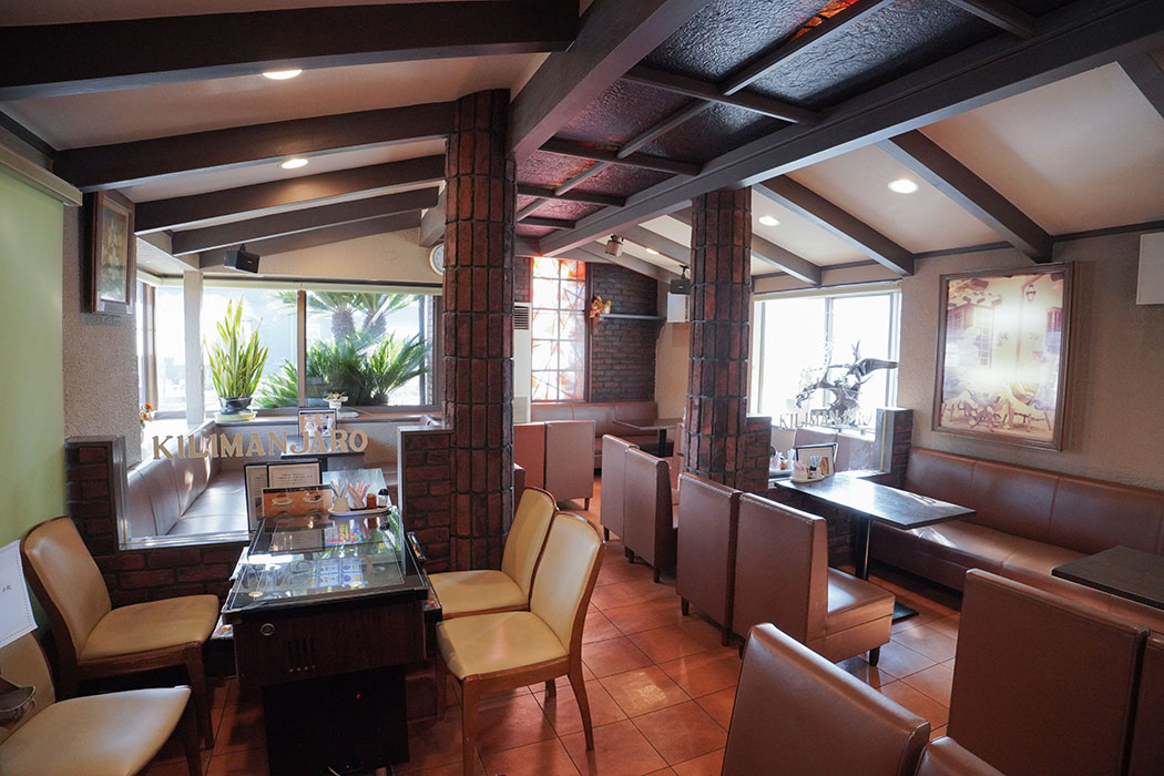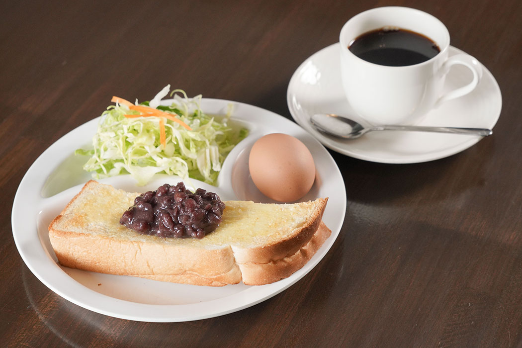 キリマンジャロ豆使用。サイホン立てです。 店名と同じ“キリマンジャロ”を使用した香り高いコーヒーは、オープン当初からずっとサイフォンで立てています。モーニングはトースト(バター、小倉、シナモン、ジャム)かホットドッグです。14:00以降はプチケーキかあんみつ(自家製)、ゆで卵のいずれかが付きます。また、ランチ(800円〜)も好評です。