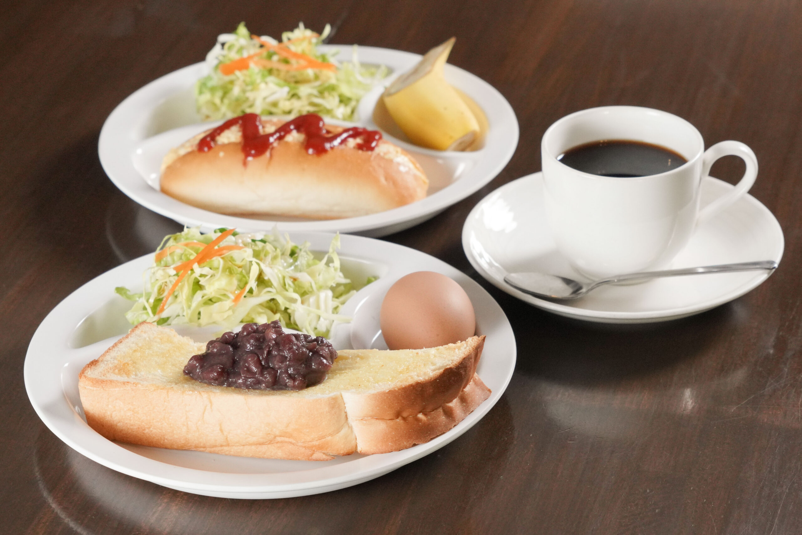 ・トースト(バターか小倉かシナモンかジャム)+ゆで卵+生野菜のサラダ ・ホットドック+バナナ+生野菜のサラダ ランチ・モーニングのテイクアウト出来ます。