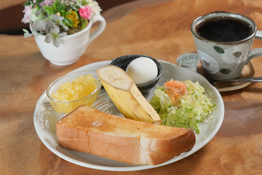トースト+浮野のゆで卵+サラダ+日替わりデザート+フルーツ