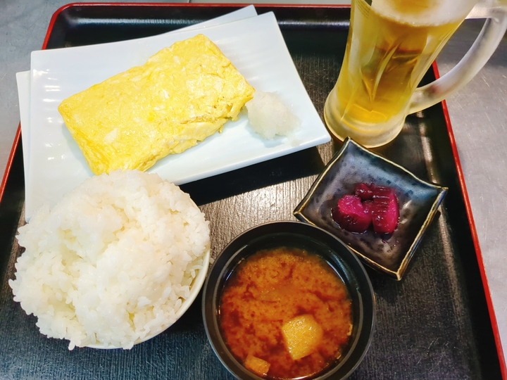 A.とんかつモーニングドリンク代(490円)+400円 三元豚とんかつ100g・はつしも飯・味噌汁 おかわり別料金なので最初に山盛りでどうぞ! B.餡掛けだし巻きの朝ごはん(ドリンク付)1090円