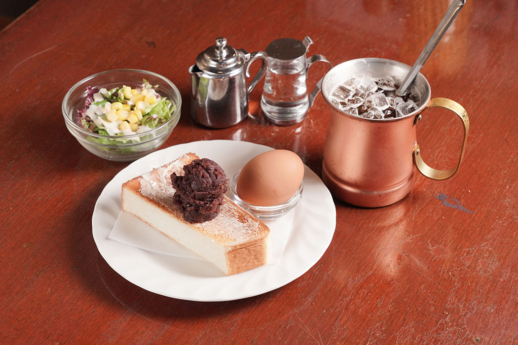 Aワッフル+サラダ+ゆで卵 Bサンドイッチ+サラダ+ゆで卵 Cバタートースト+サラダ+ゆで卵 Dジャムトースト+サラダ+ゆで卵 Eエッグトースト+サラダ+ゆで卵 F小倉トースト+サラダ+ゆで卵 Gシナモントースト+サラダ+ゆで卵 Hシフォンケーキ