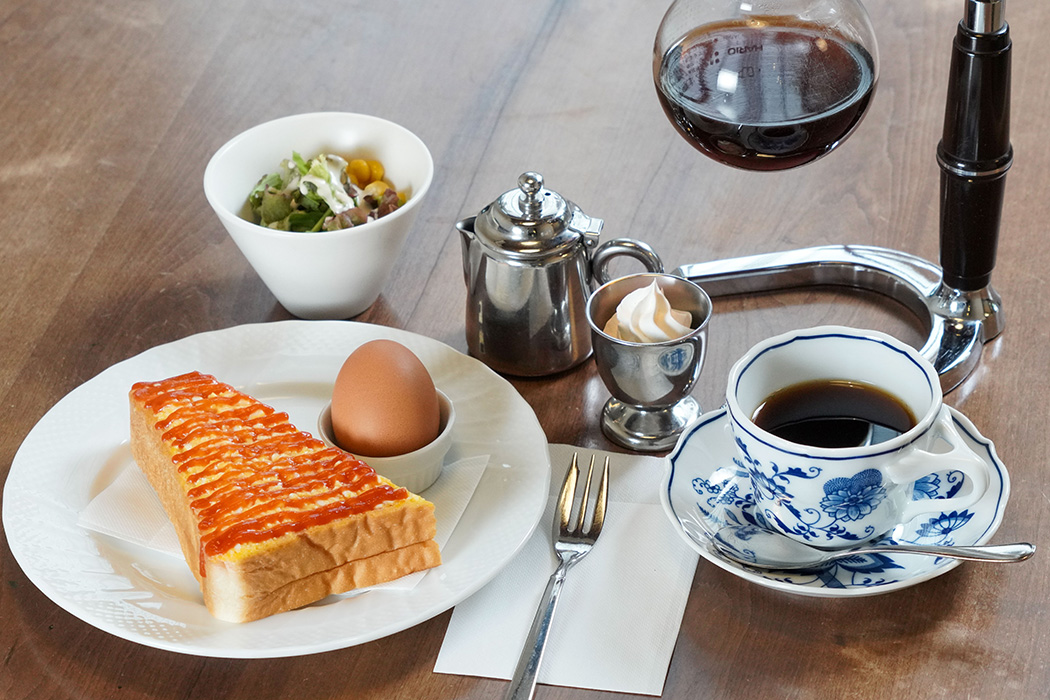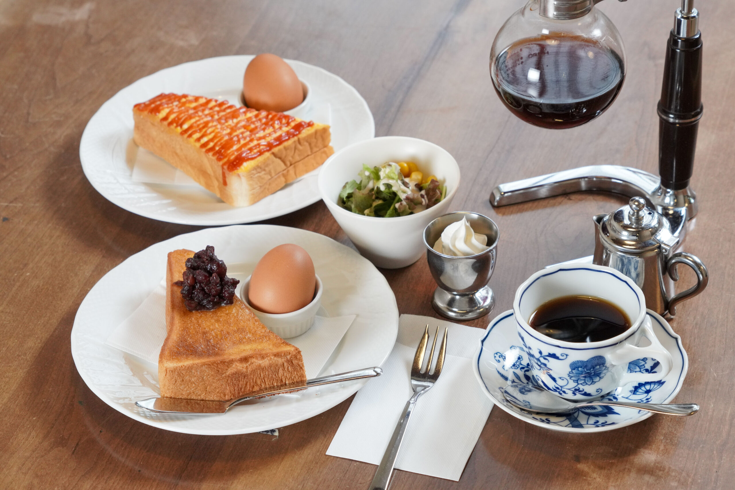 サイフォンコーヒーは2杯分あります。 大通りから少し奥に入った和風の隠れ家カフェです。ご注文いただいてから一杯ずつ淹れるサイフォンコーヒーをクラッシックが流れるゆっくりした空間でお楽しみ下さい。 モーニングは8種類からお選びいただけます。午後からはアフタヌーンサービスもお付けしています。