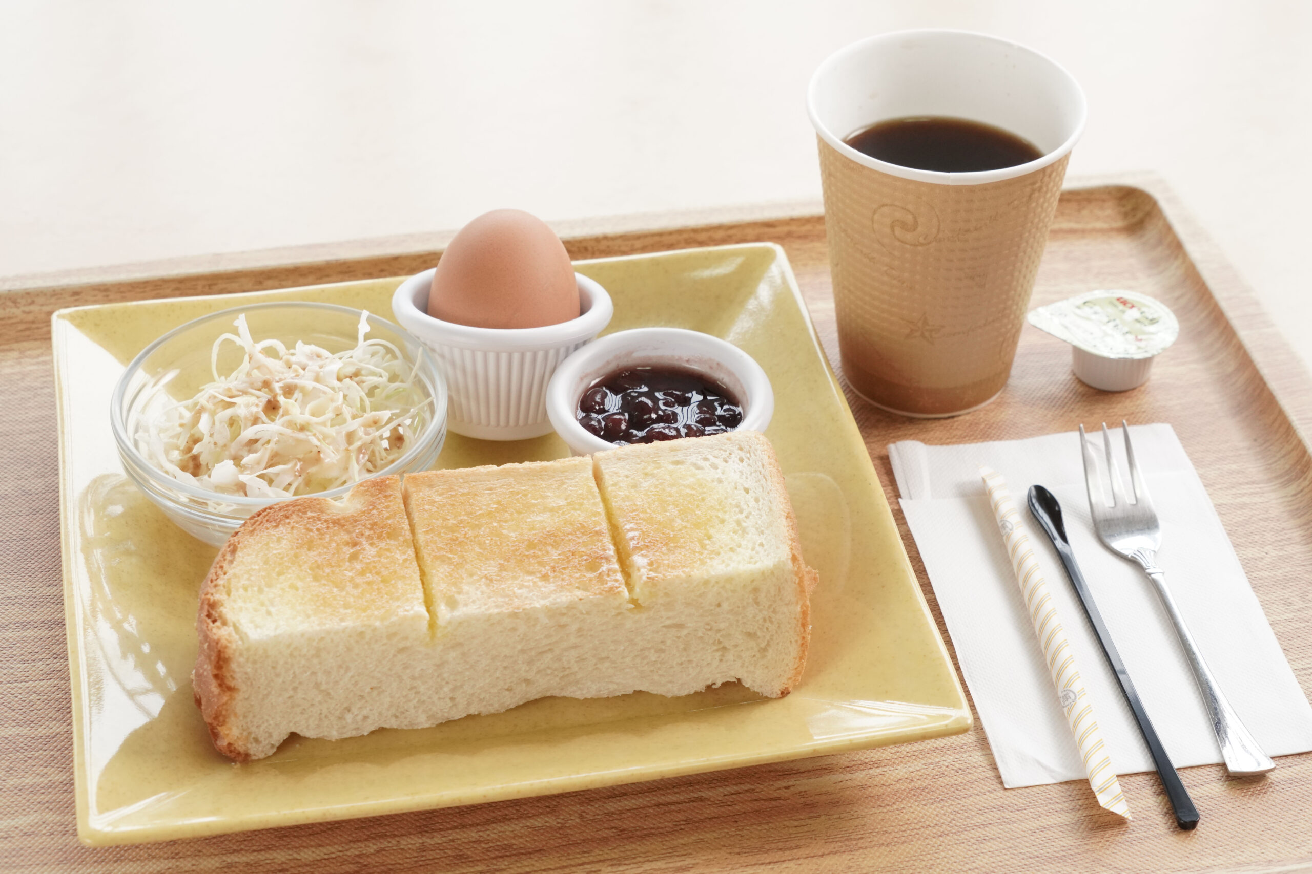 トースト+ゆで卵(浮野の卵)+小倉+サラダ