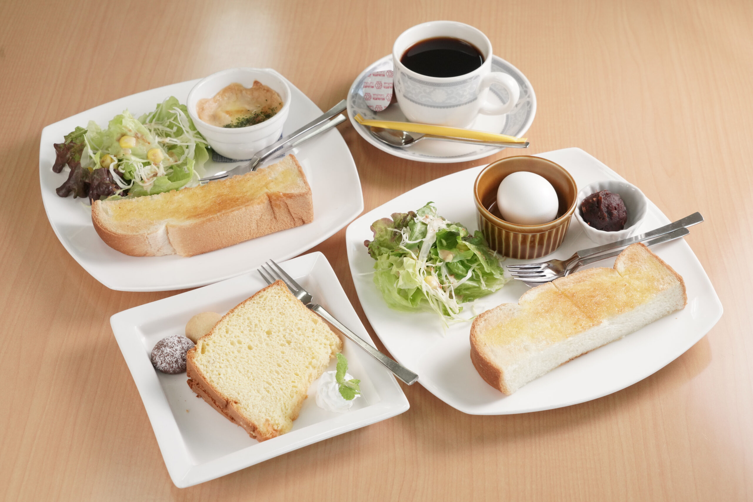 ・小倉トースト+季節のサラダ+ゆで卵