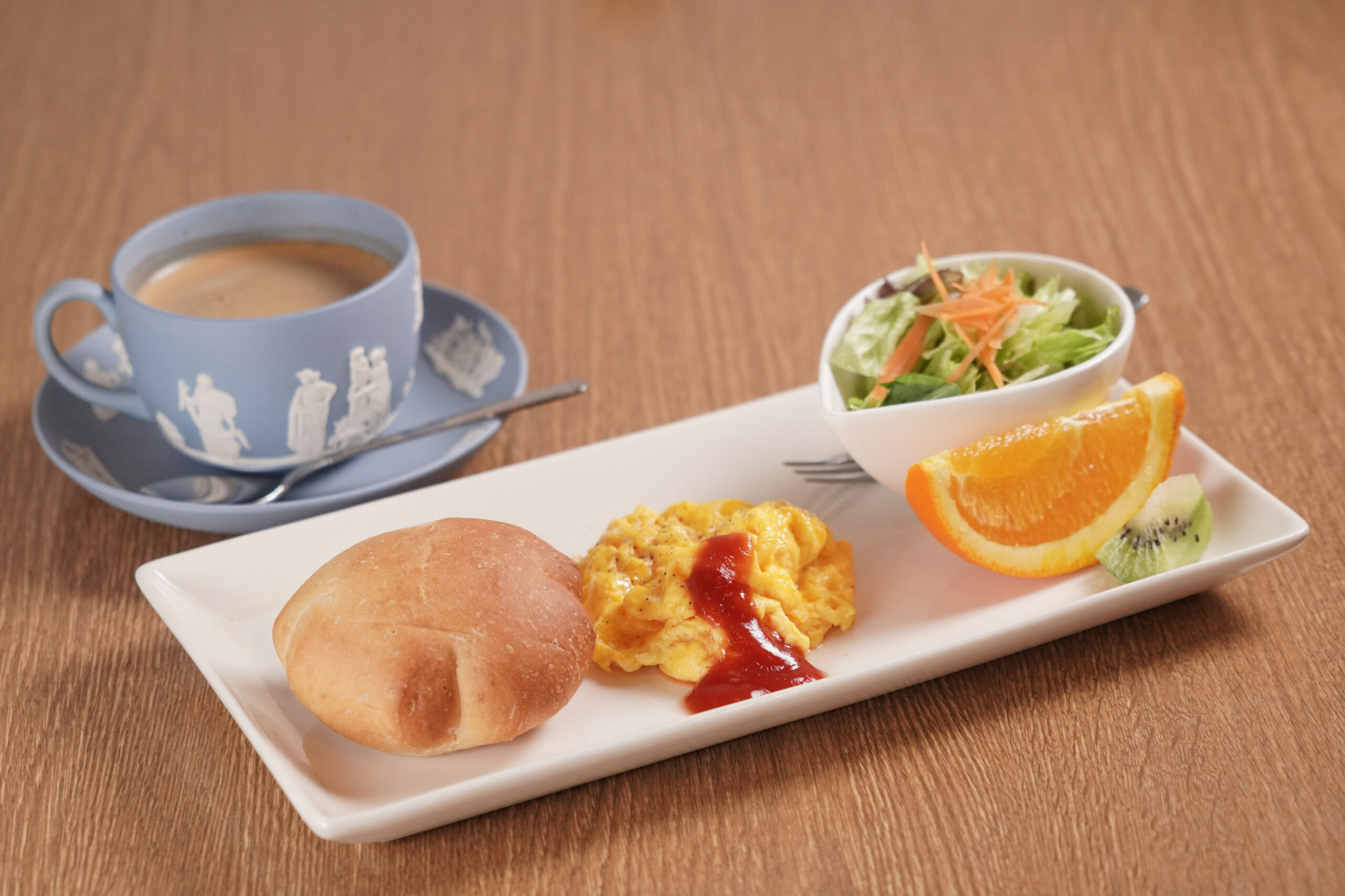 モーニング(ドリンク代) 自家製パン+サラダ+スクランブルエッグ+フルーツ