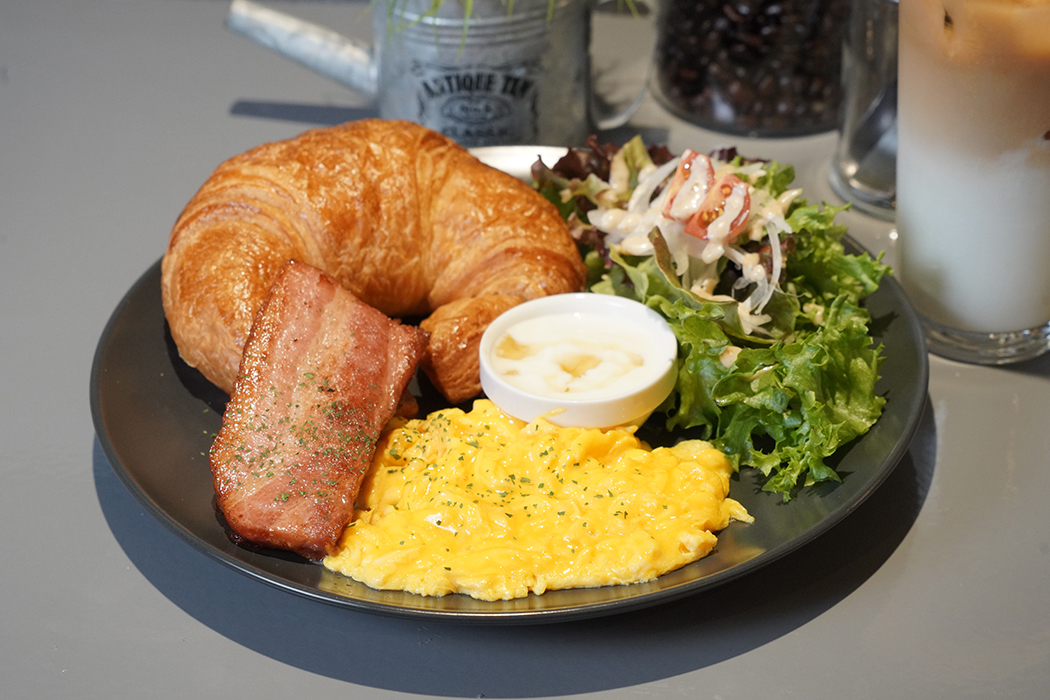 ①OMU特製モーニングプレート780円 ②バケット生ハムサンド580円 ③バケットサバサンド580円 ④サービスモーニング0円(バターorジャムorあんこ)