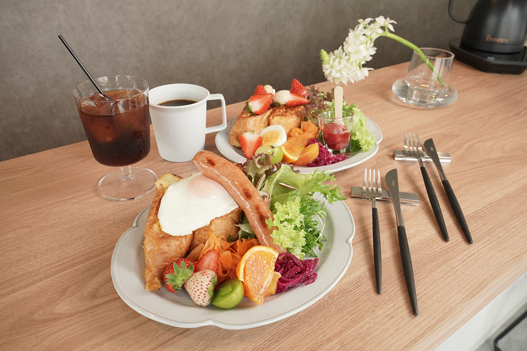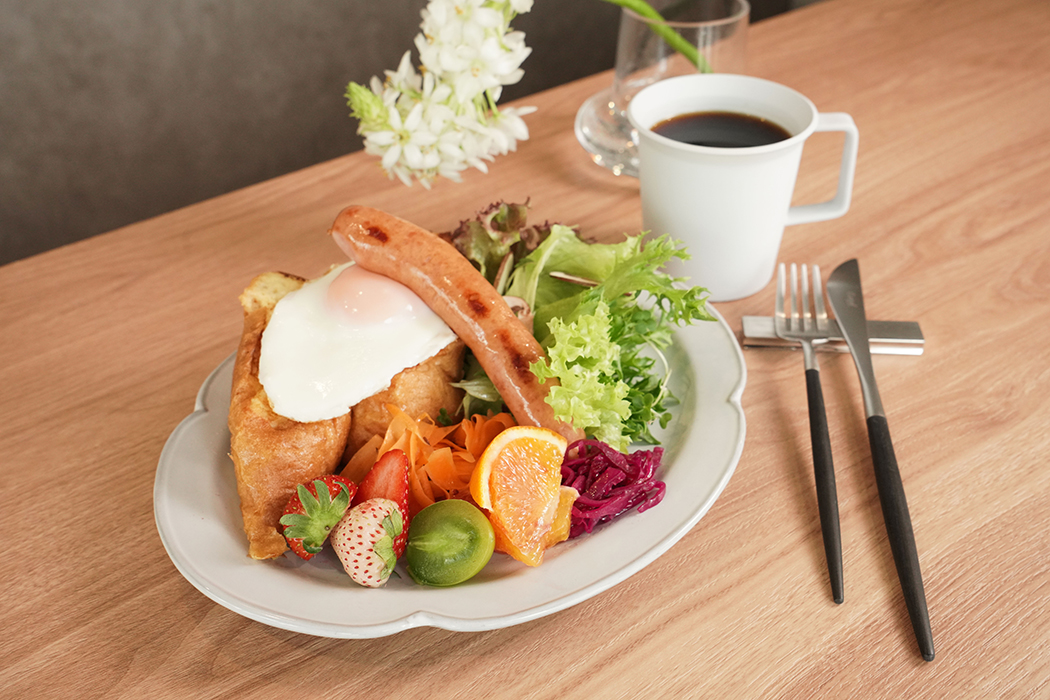(+800円でモーニングメニュー) フレンチトースト・サラダ・フルーツ ※フレンチトーストののっけ具材は仕入れによって異なります