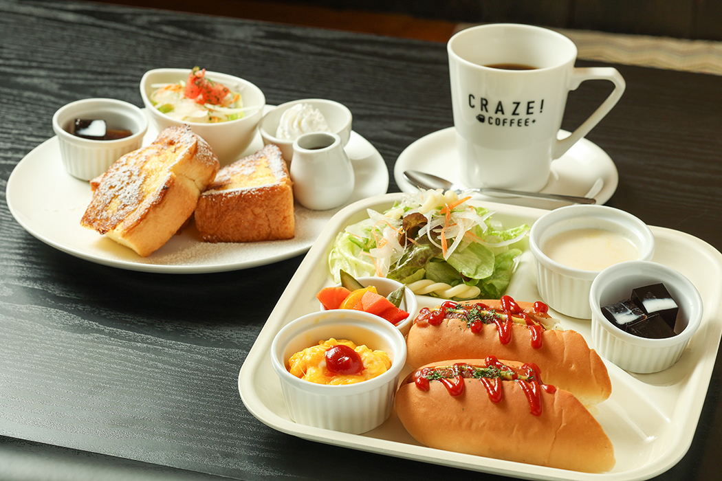 ・トースト(バター・小倉・きなこ・メープル) ・サンドウィッチ〈サラダ・ゆで卵・ゼリー・スープ付き〉 ●モーニングセット+150円~ ・ホットドッグ(サラダ・スクランブルエッグ・ゼリー・スープ・ピクルス付)(+150円) ・ピザトースト(サラダ・スクランブルエッグ・ゼリー・スープ・ピクルス付)(+150円) ・フレンチトースト(サラダ・ホイップ・ゼリー付)(+180円)